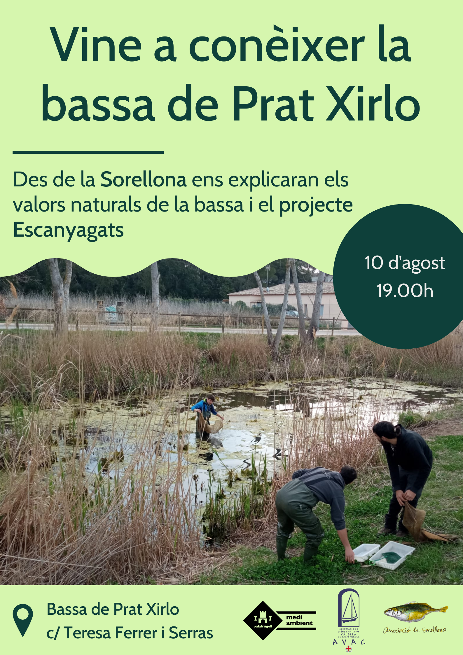 Des de la Sorellona ens explicaran els valors naturals de la bassa i el projecte Escanyagats, per a la recuperació de l'espinós, un peix d'aigua dolça propi dels rius i rieres mediterrànies.