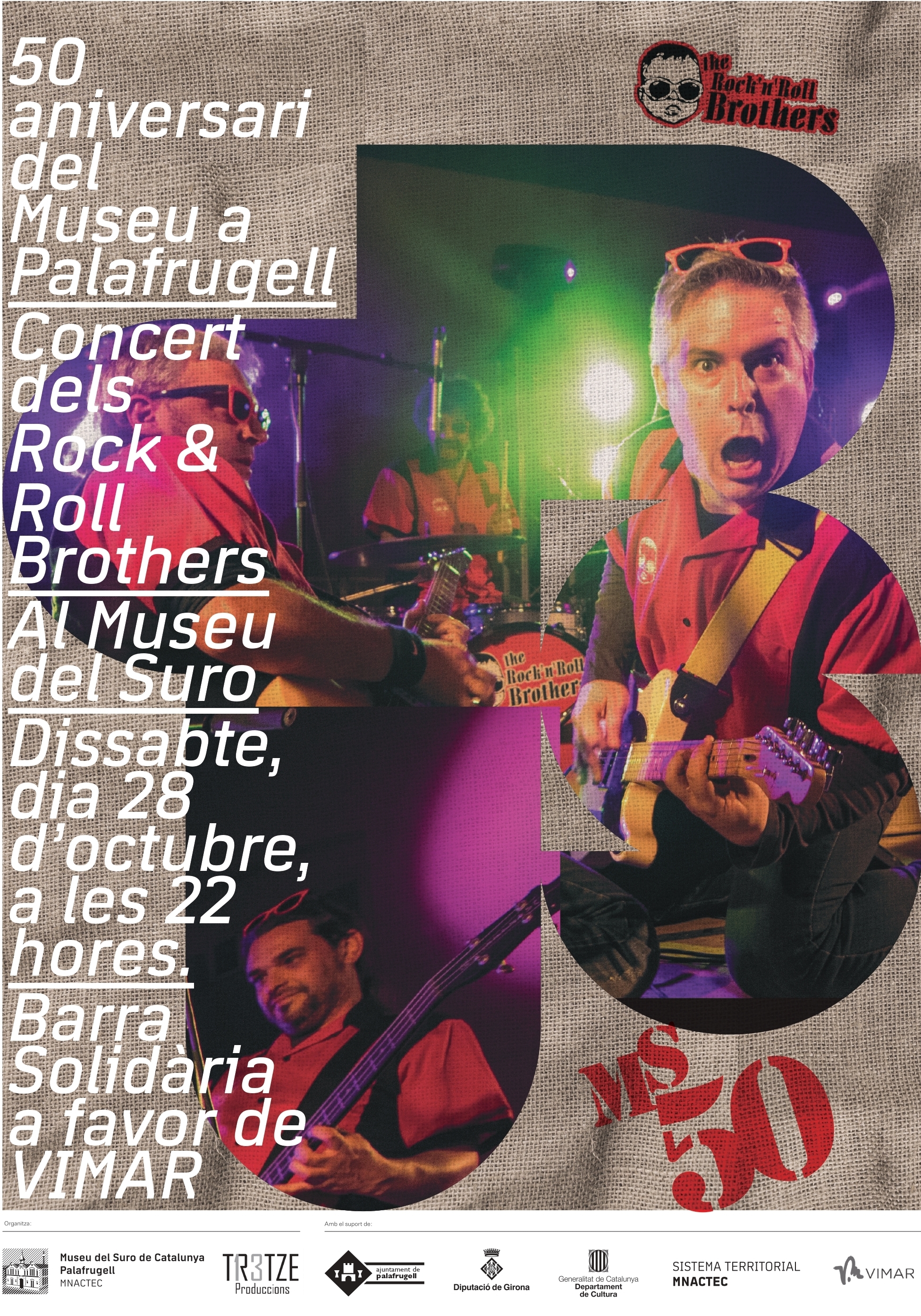22.00 h Concert dels “Rock’n Roll Brothers” amb barra solidària destinada a la Fundació Vimar, una fundació sense ànim de lucre que treballa perquè totes les persones amb especials capacitats del BaixEmpordà disposin dels serveis necessaris. Activitats gratuïtes. Hi està tothom convidat!