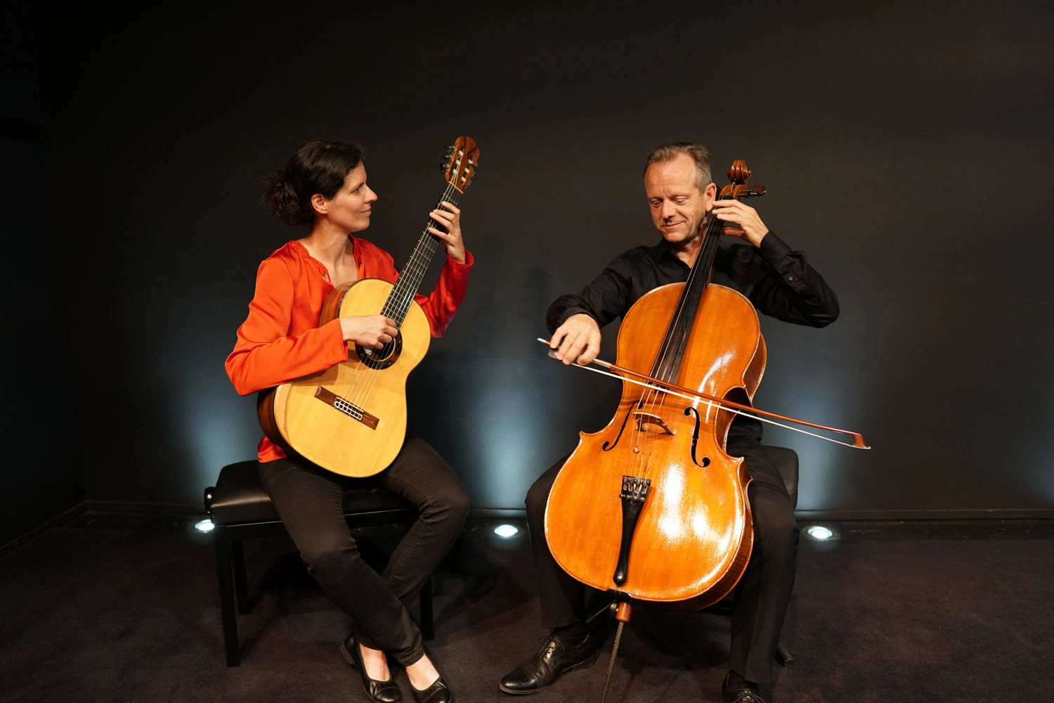 Nathalie Mengual i François Ragot formen el Duo Arpegi. Un duet que interpreta amb plaer el repertori que combina el so càlid de la guitarra i el so profund i vibrant del violoncel. Cordes polsades i fregades arriben a les nostres ànimes amb gran passió.
