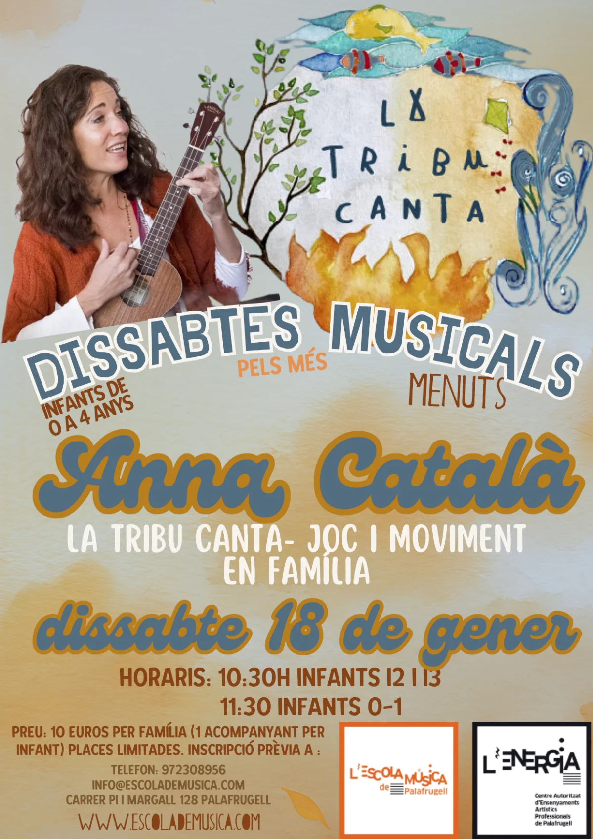 10.30 i 11.30 h. Dissabtes musicals. Per a infants de 0 a 3 anys. Preu: 10,00 € per família (1 acompanyant per infant). Places limitades. Cal inscripció prèvia al tel. 972 30 89 56. Informació: info@escolademusica.com