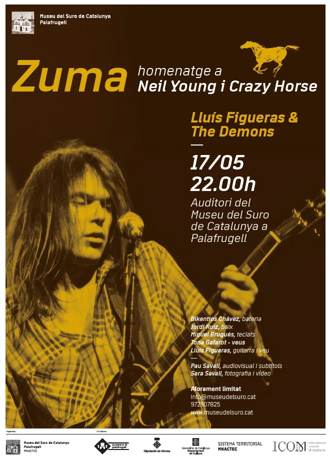 22.00 h. Concert “Zuma, homenatge a Neil Young i Crazy Horse”, a càrrec de Lluís Figueras & The Demons (Bikentios Chávez-bateria, Jordi Ruiz-baix,Miquel Brugués-teclats, Tona Gafarot-veus, Lluís Figueras-guitarra i veu,Pau Savall-subtítols i audiovisuals i Sara Savall-fotografia).