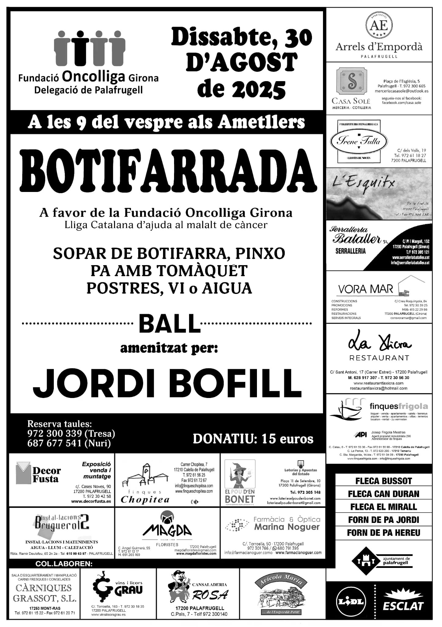 Reserves als telèfons 687 67 75 41 i 972 30 03 39.