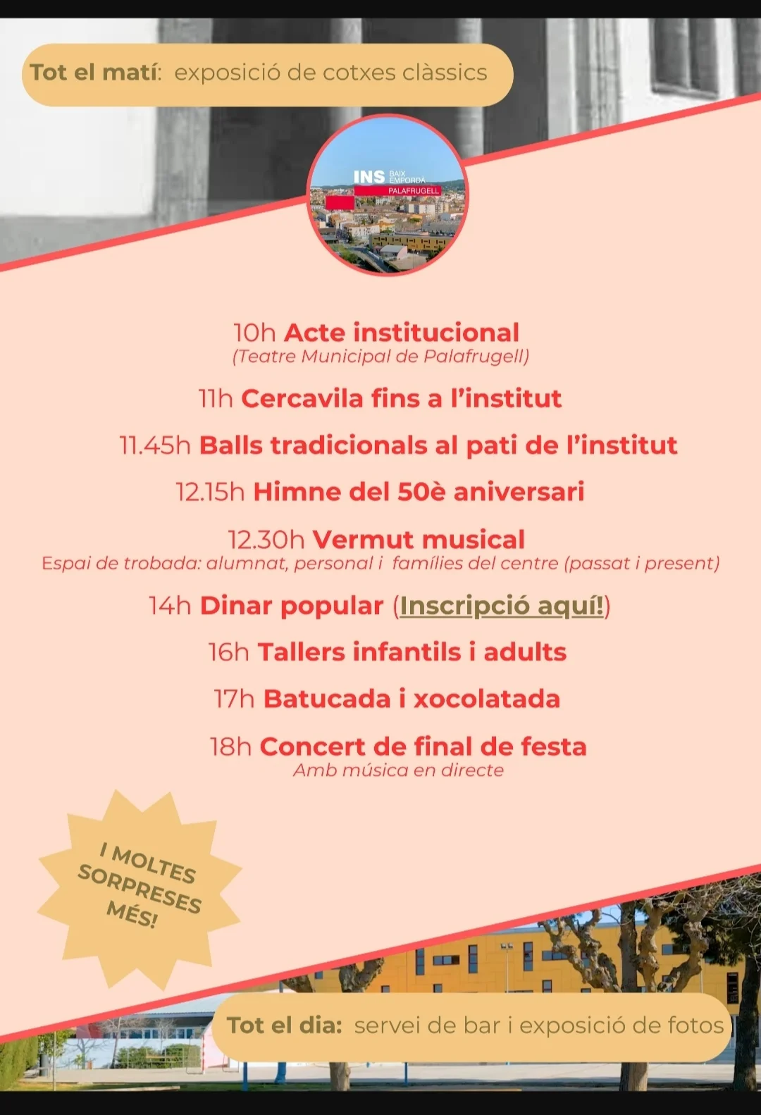 Es convida a tota la comunitat educativa (passada i present) a la festa final de caràcter popular i tots els seus actes del 50è aniversari del nostre centre.