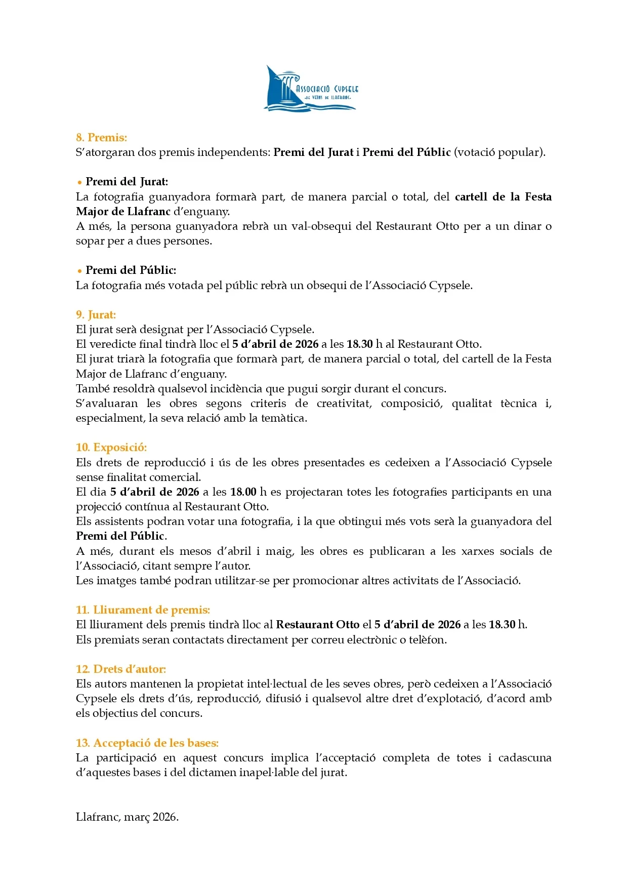Organitza: Associació Cypsele de Veïns de Llafranc